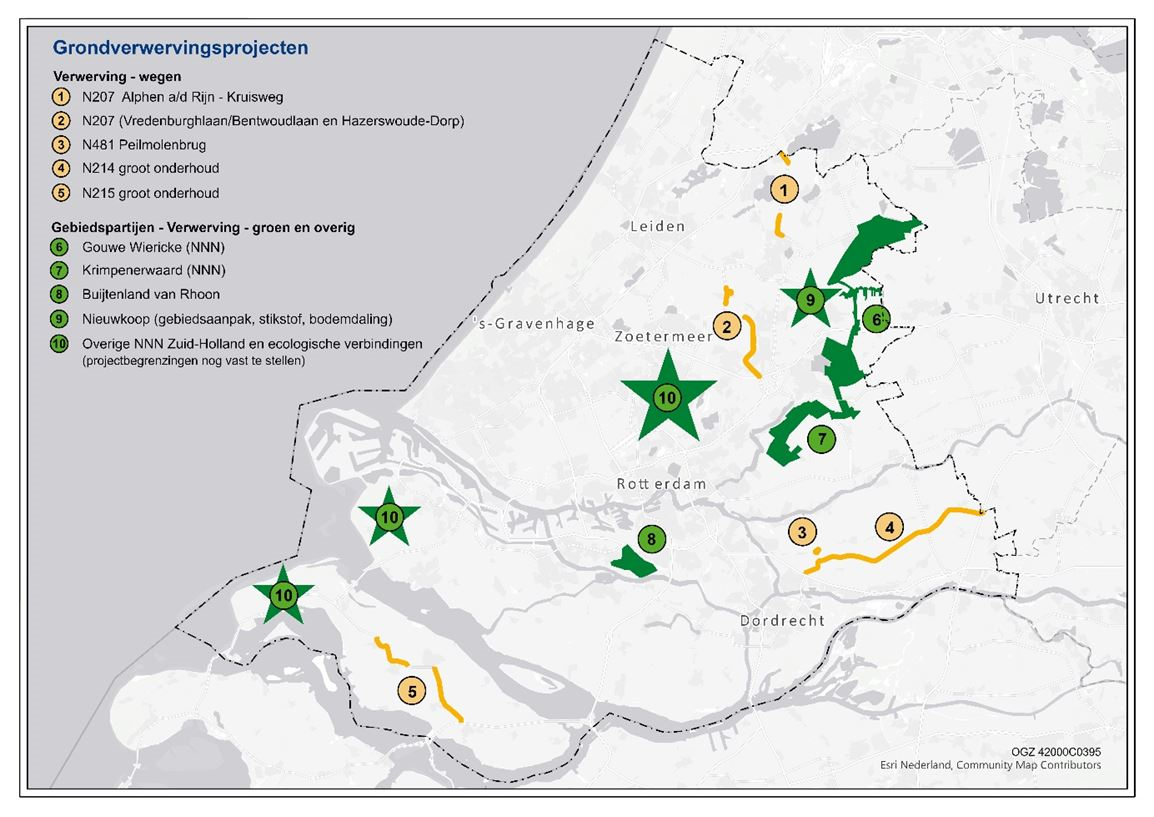 Kaart A: Gebieden waar we grond kopen voor projecten voor (auto)wegen en natuurgebieden